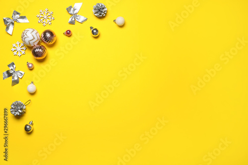 Fototapeta premium Beautiful Christmas composition on color background