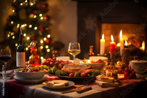 Fototapeta premium Beautiful christmas holiday dining table decorated prepared for new year's eve