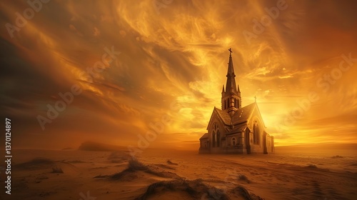 Obraz premium Beautiful Church Silhouette at Sunset: A Scenic Display of Spiritual...