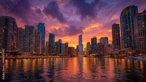 © Pooh Creation, Fototapeta premium Beautiful City View at Sunset