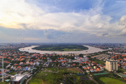 © Nhan, Fototapeta premium Beautiful cityscape at night at Ho Chi Minh city, Vietnam. Top view aerial of center Ho Chi Minh City.