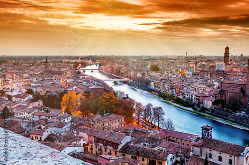 Obraz premium Beautiful cityscape. Sunset in Verona, Italy.