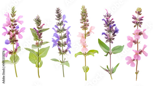 Obraz premium Beautiful Clary Sage Inflorescences Isolated on Transparent Background for...