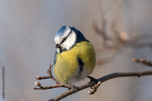 Obraz premium Beautiful close up of a Blue tit in spring sunshine