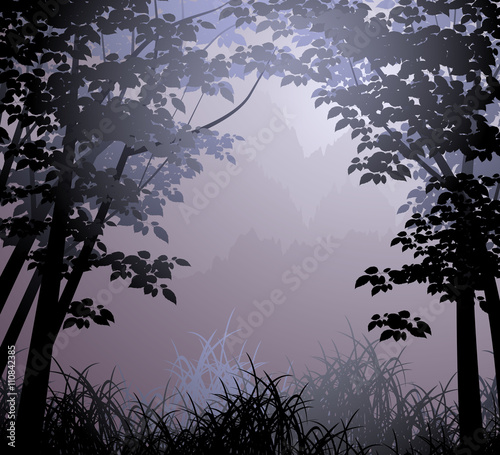© mapichai, Naklejka premium Beautiful cloud forest vector nature landscape background