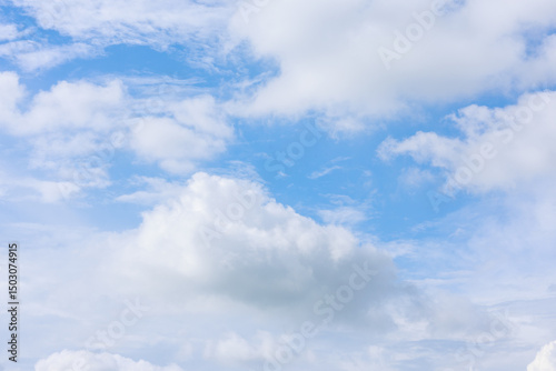 © Wanchai, Fototapeta premium Beautiful cloud formations gather across a vivid blue sky, creating a stunning and peaceful natural backdrop.