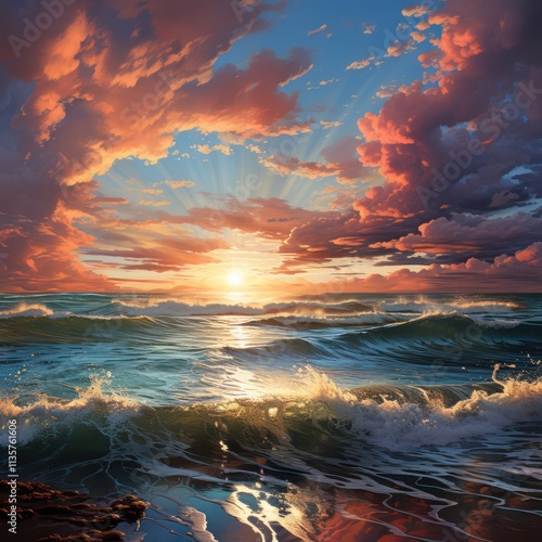 Fototapeta premium beautiful cloud patterns and sunsets on the sunlit ocean By Generated AI