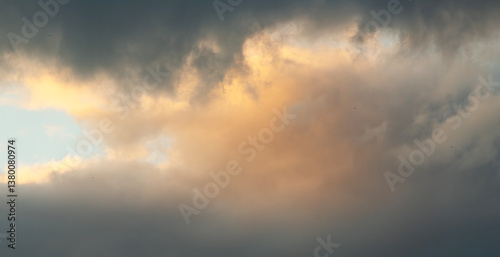 © Inga Av, Fototapeta premium Beautiful clouds on the sky after sunset . Sunset sky background.