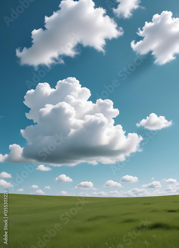 © Nornat.art, Fototapeta premium Beautiful Cloudy Sky Above Green Field