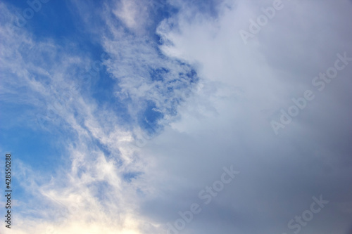 Obraz premium Beautiful cloudy sky bright blue sky with white clouds on a Sunny summer day