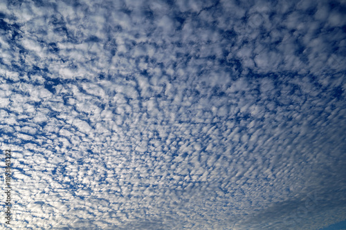Obraz premium Beautiful cloudy sky with small fluffy white clouds.