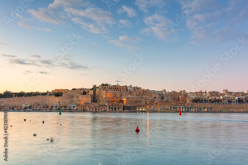 Obraz premium Beautiful coastline of Valletta city at sunset, Malta.
