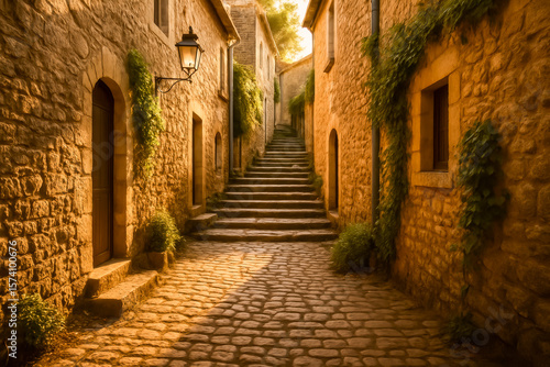 © thodonal, Obraz premium Beautiful cobblestone street in a charming historic village