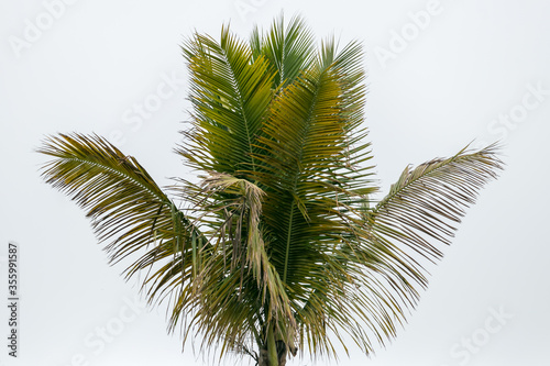 © lionelvasquez, Fototapeta premium Beautiful coconut tree with white clouds as background
