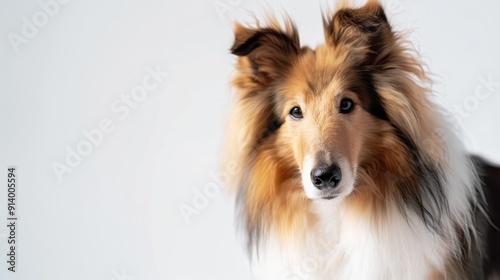 © Shozib, Naklejka premium Beautiful collie dog is posing on a white background, its fur is long and flowing