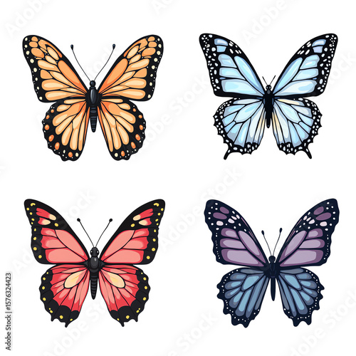 © toothsomecat, Obraz premium Beautiful Colorful Cartoon Butterflies Sticker Pack