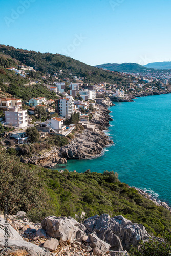 Naklejka premium Beautiful colorful cityscape on the mountains over Adriatic sea, Europe,...