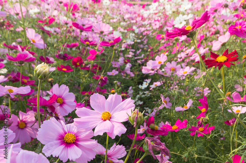© Ladda, Obraz premium beautiful colorful cosmos in field. nature background.