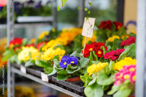 Fototapeta premium Beautiful colorful flowers sold in outdoor flower shop