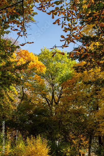 Naklejka premium Beautiful colorful foliage of trees during autumn season.