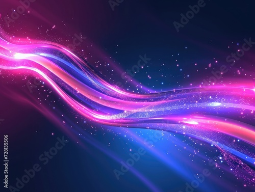 Fototapeta premium Beautiful colorful light effect of neon glow lights and flash. Background with flying design elements.blue background