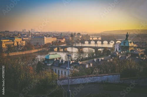 © Lucie, Obraz premium Beautiful colorful Prague view. Sunset in Europe