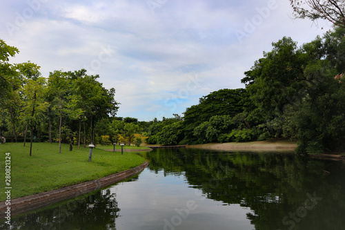 © Weerayuth, Fototapeta premium Beautiful colorful red and pink flowers and green nature plant tree forest in the public garden and green city parks
