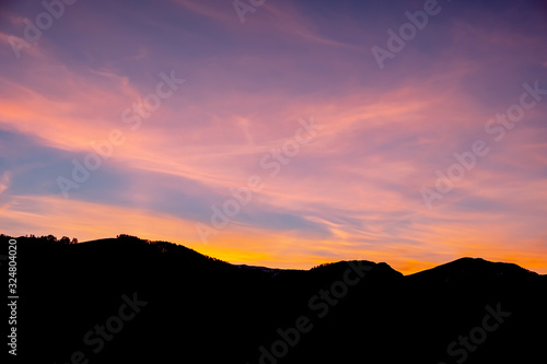© Adil, Fototapeta premium Beautiful colorful sky with mountain silhouette. Sunset in the mountains.