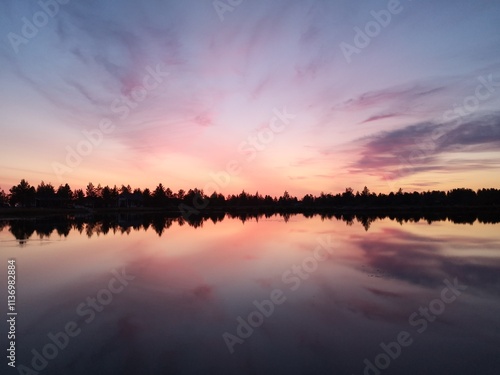 © Taru A, Fototapeta premium Beautiful colorful sunset on a lake