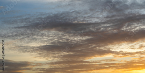 Fototapeta premium Beautiful colorful sunset with orange clouds. Sky background.