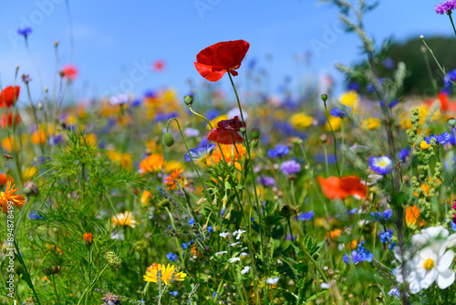 Obraz premium Beautiful colorful wildflowers blooming in the Danish countryside