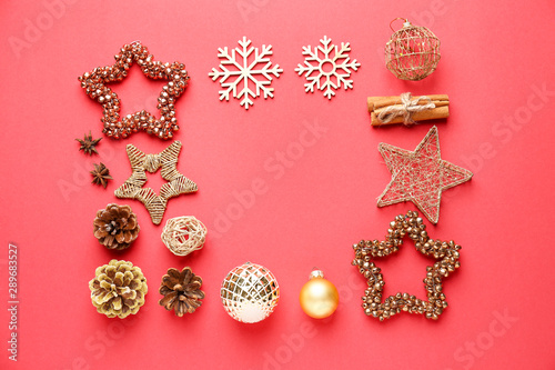 Naklejka premium Beautiful composition with Christmas decor on color background