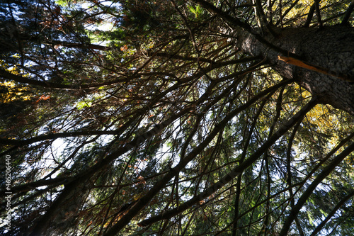 © New Africa, Obraz premium Beautiful conifer tree in forest, bottom view