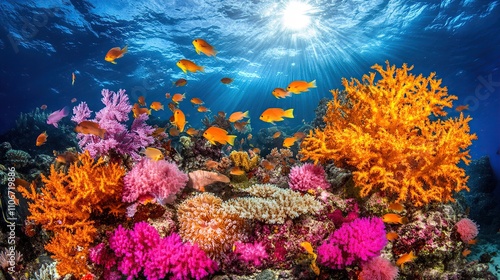 Fototapeta premium beautiful coral and fish ray of light from above v2