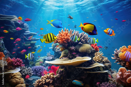 Naklejka premium Beautiful coral reef and colorful tropical fishes