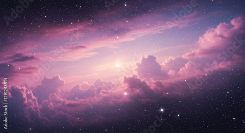 Fototapeta premium Beautiful cosmic scene shows celestial clouds against a starry sky