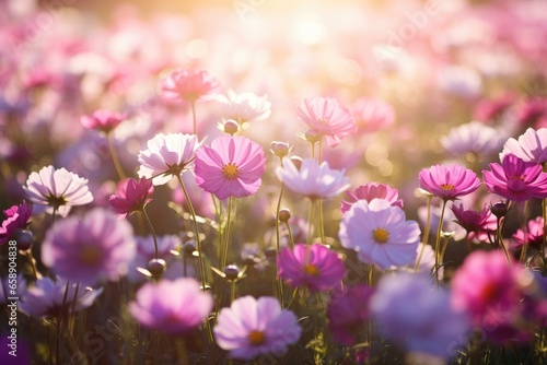 Obraz premium Beautiful cosmos flowers blooming in garden