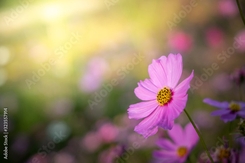Obraz premium Beautiful Cosmos flowers in garden. Nature background.