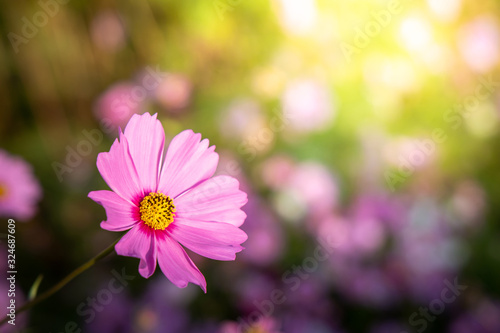 Obraz premium Beautiful Cosmos flowers in garden. Nature background.