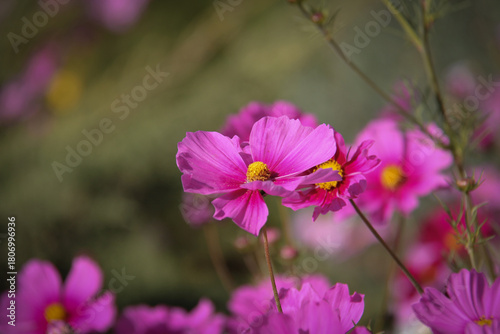 Fototapeta premium Beautiful cosmos flowers of different shades of pink next to each other