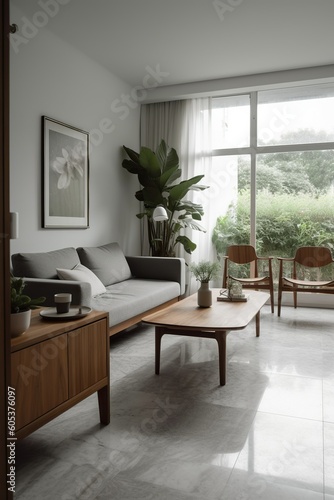 Fototapeta premium Beautiful cosy interior with lots of interior plants. Generative Ai