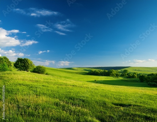 © Clayton, Obraz premium beautiful countryside in ukraine europe summertime nature photo of lush green pastures and clear blue sky explore earth s beauty copy space image place for adding text or design
