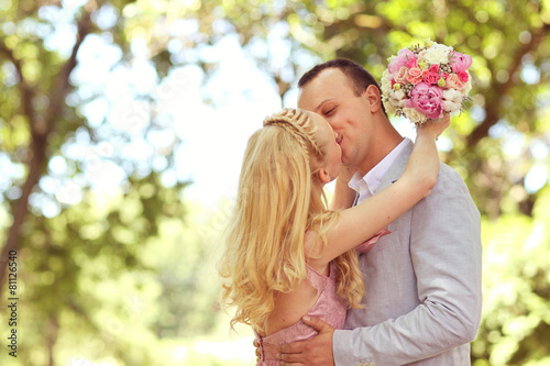 © hreniuca, Fototapeta premium Beautiful couple celebrating in the park