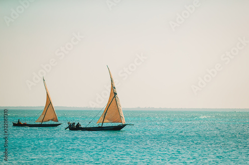 © travnikovstudio, Fototapeta premium Beautiful cozy bay with boats and clear turquoise water