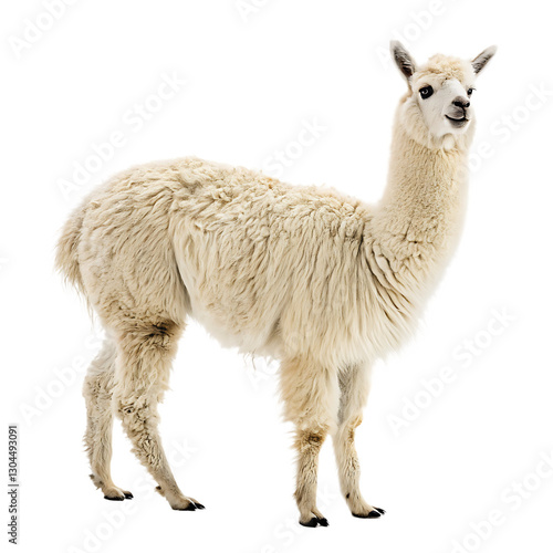 © KingStock, Fototapeta premium Beautiful Cream-Colored Alpaca Against a White Background