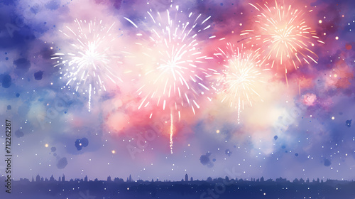 Obraz premium Beautiful creative holiday background with fireworks and sparkles