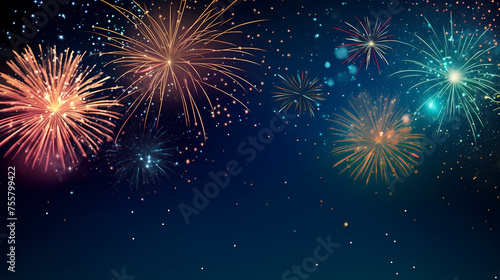 Naklejka premium Beautiful creative holiday background with fireworks and sparkles