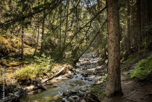 © Tanya, Obraz premium Beautiful creek running through a conifer forest in the rocky mountains
