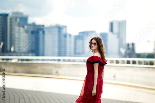 © Anastasiya, Fototapeta premium beautiful cute sexy brunette girl walking around the city