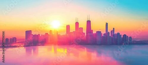 Fototapeta premium Beautiful Dawn Casting Warm Light Over City Heights